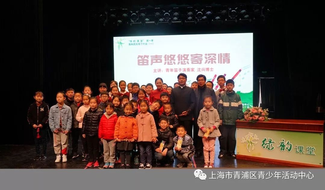 2019年3月31日上午,众多热爱民乐的孩子与家长、教师齐聚青少年活动中心小剧场,迎来“绿韵课堂”的“开学第一课”:青年笛子演奏家、上海音乐学院博士、上海交通大学青年教师沈兴走上讲台,开讲第一季“我与民乐有个约会”的第一课——《笛声悠悠寄深情》。