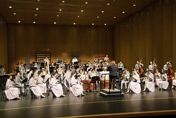 4月17日晚,在苏州保利大剧院举行的器乐专场正式开演。上海市杨浦区少年宫民乐团全体师生为本次展演全情投入,激情演绎了参赛作品《达勃河随想曲》,民乐团运用充满地域特点的旋律与丰富多变的节奏,描绘了能歌善舞的四川白马族人民对生活的美好憧憬与向往。当指挥棒在尾声中划过一道美丽的弧线,音乐在空气中凝固,观众报以如雷的掌声,久久回荡,民乐团的师生们露出了灿烂的微笑。