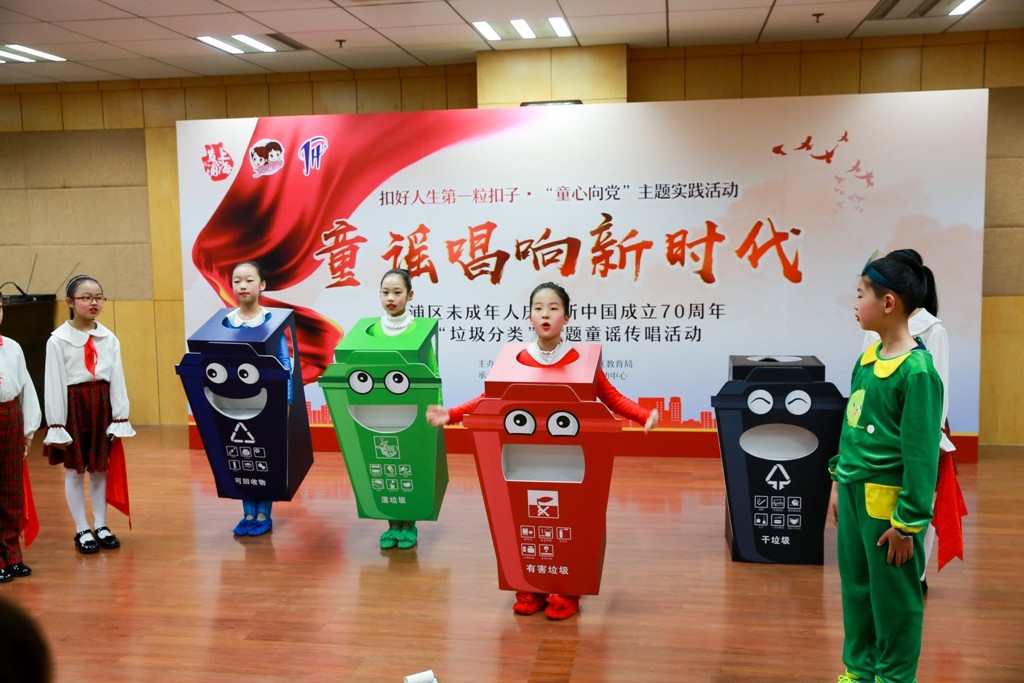 “阿娘——阿娘——,覅偷懒,瞎笃八笃,不来塞。”一句嗲声嗲气的吴侬软语赢得了在场观众热烈的掌声,观众和评委看着孩子们纯真的表演,脸上露出了会心的微笑。这是近日举行的黄浦区“童心向党”优秀童谣传唱活动表演现场的精彩一幕。4月12、13日,来自黄浦区小学和幼儿园的38支队伍齐聚黄浦区青少年科技活动中心,开展主题为“童谣唱响新时代”的未成年人优秀童谣传唱展演。孩子们用朴实的语言、稚嫩的嗓音、天真的表演,和着律动的节拍,为大家展示了黄浦少年儿童积极参与和宣传生活垃圾分类,积极投入全国文明城区的创建,以实际行动践行社会主义核心价值观,向“建国70周年”“上海解放70周年”献礼。