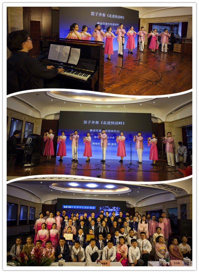 5月3日,上海市2019优秀竹笛学生乐团展演在浦东385文化中心举行,来自上海市各区的十二支优秀团队齐聚文化中心,九十多名青少年小笛手在舞台上一展身手,他们以笛子重奏、齐奏等形式呈献了一场精彩的笛艺盛宴。在此次沪上青少年笛子顶级队伍云集的展演活动中,作为本次展演的特邀乐团,上海音乐学院唐俊乔竹笛乐团和上海大学音乐学院乐团特别为展演活动奉上了《云南回忆》、《跑旱船》,他们精湛的技艺博得了现场如雷般的掌声。各区少年宫、活动中心、学校的10个竹笛优秀学生团队分别演奏了《小鸟》、《铁匠》、《美丽的村庄》、《草原英雄小姐妹》、《垛历滑吐飞》、《喜相逢》、《沙湖的春天》、《雨打芭蕉》等精彩的竹笛重合奏作品。经过激烈地角逐,结果静安区青少年活动中心馨韵笛子重奏团一曲《走进快活岭》以高难度的笛子技巧,一举夺得上海市中小学生笛子比赛的冠军。这荣誉的获得与笛子学生们平时的苦练好学、指导老师的辛勤付出是分不开的。