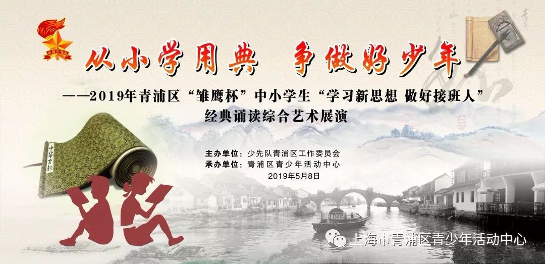 为了让我区广大少年儿童牢固树立永远跟党走的理想信念,激发队员努力成为社会主义合格建设者和可靠接班人的使命担当。近日,在青浦区青少年活动中心的小剧场举办了“从小学用典,争做好少年”——2019年青浦区“雏鹰杯”中小学生“学习新思想 做好接班人”经典诵读综合艺术展演。