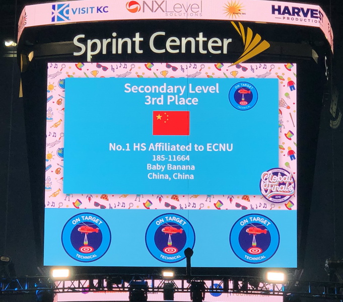 2019年5月22日-25日,DI创新思维全球总决赛在美国密苏里州堪萨斯城隆重举行。华东师范大学第一附属中学“Baby Banana”参赛队经过近9个月的备赛,以全国赛团队和即时挑战双料冠军的成绩第五次出征全球赛,在世界的舞台上展示虹口学子的风采,最终获得了挑战A技术类挑战高中组第三名(季军),同时为本组别中国队最好成绩。