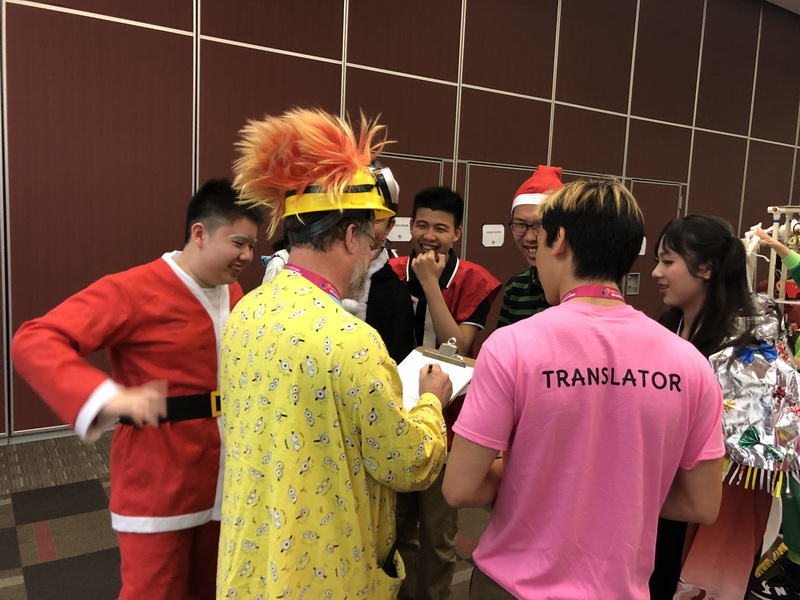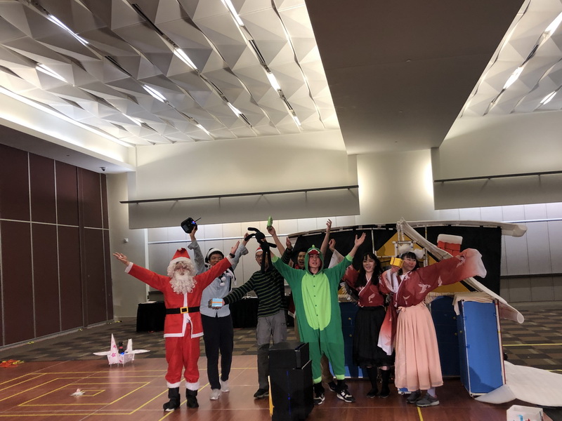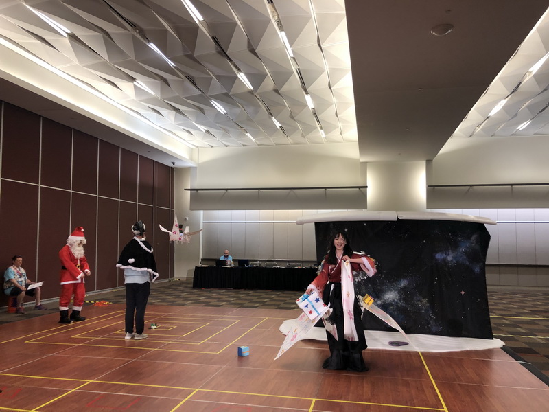 技术类挑战(挑战A)今年的赛题是正中目标,团队需要设计制作一个飞行器,并完成五次起飞,空投,着陆?;Ψ洞笱У谝桓绞糁醒堑碧斓谝恢П热游?,7点大家就来到比赛场馆,化妆更衣,对所有道具进行最后的测试和调整。比赛中Baby Banana队伍带来的是一个无比温馨的故事:圣诞老人的第66个徒弟驾驶千纸鹤探索人类世界,在送礼物播撒快乐的过程中自己也收获了成长。千纸鹤形状的飞行器配合剧情,精准地完成每次投递,时机和落点都分毫不差。表演结束后,裁判们都对飞行器和道具自选项目的技术创新啧啧称奇,给出了很高的评价。不少在旁观看的其他外国友队纷纷竖起大拇指,夸赞队员们“Good job!!”