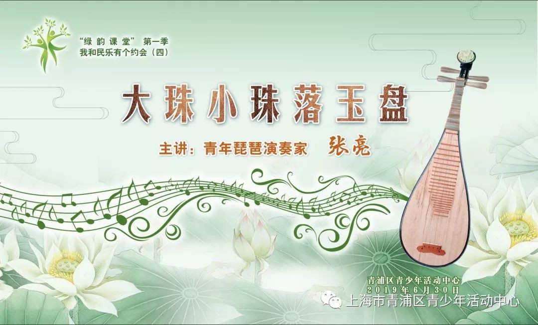 六月末,上海正式进入雨季,但滂沱大雨丝毫阻挡不住孩子们对民乐的热爱。6月30日上午,青少年活动中心二楼会场座无虚席,大家盼望已久的“绿韵课堂”又开课啦!这是 “我和民乐有个约会”的第四讲,也是第一季的收官之作——青年琵琶演奏家张亮老师带来了题为“大珠小珠落玉盘”的专题讲座。