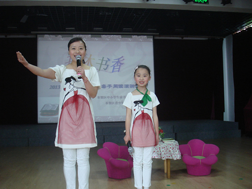 为贯彻落实《全国家庭教育指导纲要》,推动“亲子阅读”实施,进一步提高广大家长家庭教育素质,促进亲子和谐共同成长,发挥家庭在未成年人健康成长中的重要基础作用,4月21日下午,由奉贤区青少年活动中心承办的“共沐书香”2013年奉贤区小学生亲子阅读演讲赛在青少年活动中心多功能大厅隆重举行。