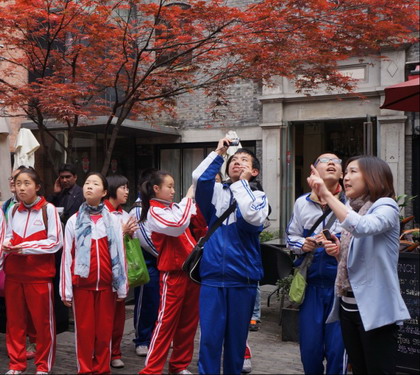 4月19日,风和日丽,春光明媚,杨浦区少年宫在海派文化的时尚地——新天地组织开展了“寻访典雅石库门探究里弄海派文化”的场馆主题探究活动,控江初级中学集邮社团和摄影社团的学生、杨浦区中小学集邮教研组的指导老师参加了此次探究活动。