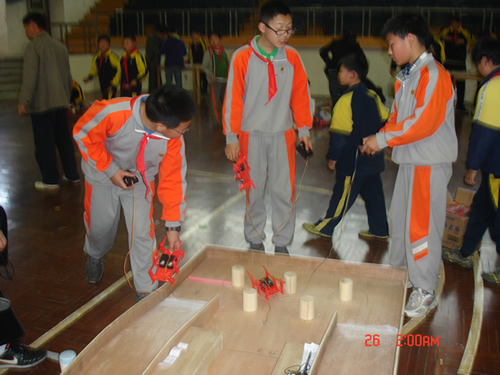 机械奥运具有普及性和竞技性,且活动形式丰富多样,不但能充实学生的课余生活,而且使学生主动学习机器人的相关知识、参与机器人设计与制作实践,从而启迪智慧、开发潜能、发扬奥运精神,深受广大青少年的青睐。为促进区域青少年机器人教育活动的开展和普及,4月26日下午,在奉贤区青少年活动中心的精心组织下,“2013上海市青少年机械奥运比赛奉贤区选拔赛”在奉教院附中举行,来自奉贤区20余所中小学的100多名学生参加了比赛。本次比赛分中、小学组进行。设置了机械人短跑、机械人拔河、机械人接力、机械人绕障四个项目。学生在规定的时间里当场制作机械人,再进行比赛。经过激烈角逐,弘文学校、钱桥学校、星火学校等学校的参赛队在比赛中表现出色,取得了优异的成绩,这些参赛队将代表我区参加5月19日即将举行的市决赛。