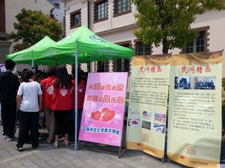 在这些义卖摊位和爱心宝贝之中,最受欢迎的要数由上海师范大学美术学院的同学们带来的凝聚爱心的“民间糖画”了。“民间糖画”是上海师范大学美术学院特色项目“传统文化进社区”和“德艺坊”工作室的主要项目之一,该项目长期在都市小区中推广,不仅能传播糖画艺术,而且为城市的精神文化建设提供了宝贵资源。