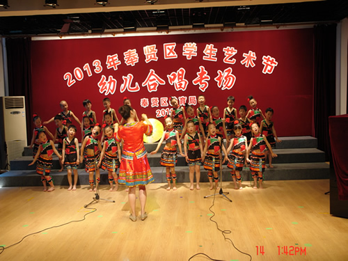 五月阳光灿烂,五月鲜花盛开,五月是歌的海洋,五月是舞的世界。5月14日下午,奉贤区青少年活动中心的舞台上来了一群小客人。有爱妈妈的“小乌鸦”、有拾稻穗的小姑娘、有嘎嘎叫的“小鸭子”、有钓月亮的小顽童、还有为了生活辛苦奔波的报童……他们是来参加奉贤区第二届幼儿合唱艺术展演的。