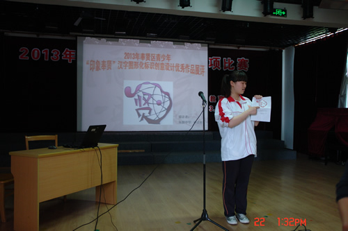 5月22日下午,由奉贤区教育局、奉贤区知识产权局、工商行政管理局奉贤分局联合举行“2013年奉贤区青少年‘汉字图形化商标’创意设计大赛总决赛”在奉贤区青少年活动中心多功能大厅隆重举行。青少年“商标创意设计”活动是奉贤区青少年实施知识产权教育的一项品牌活动,至今已持续开展了五届,过去的五届创意设计活动,主要围绕“奉贤地区特色产品”进行商标创意设计,而本届创意活动在方案设计之处,就紧密结合党的十八大指出的“建设社会主义文化强国,增强全民族文化创造力,大力发展文化创意产业”等精神,开展“印象奉贤”2013年奉贤区青少年“汉字图形化商标”创意设计大赛。
