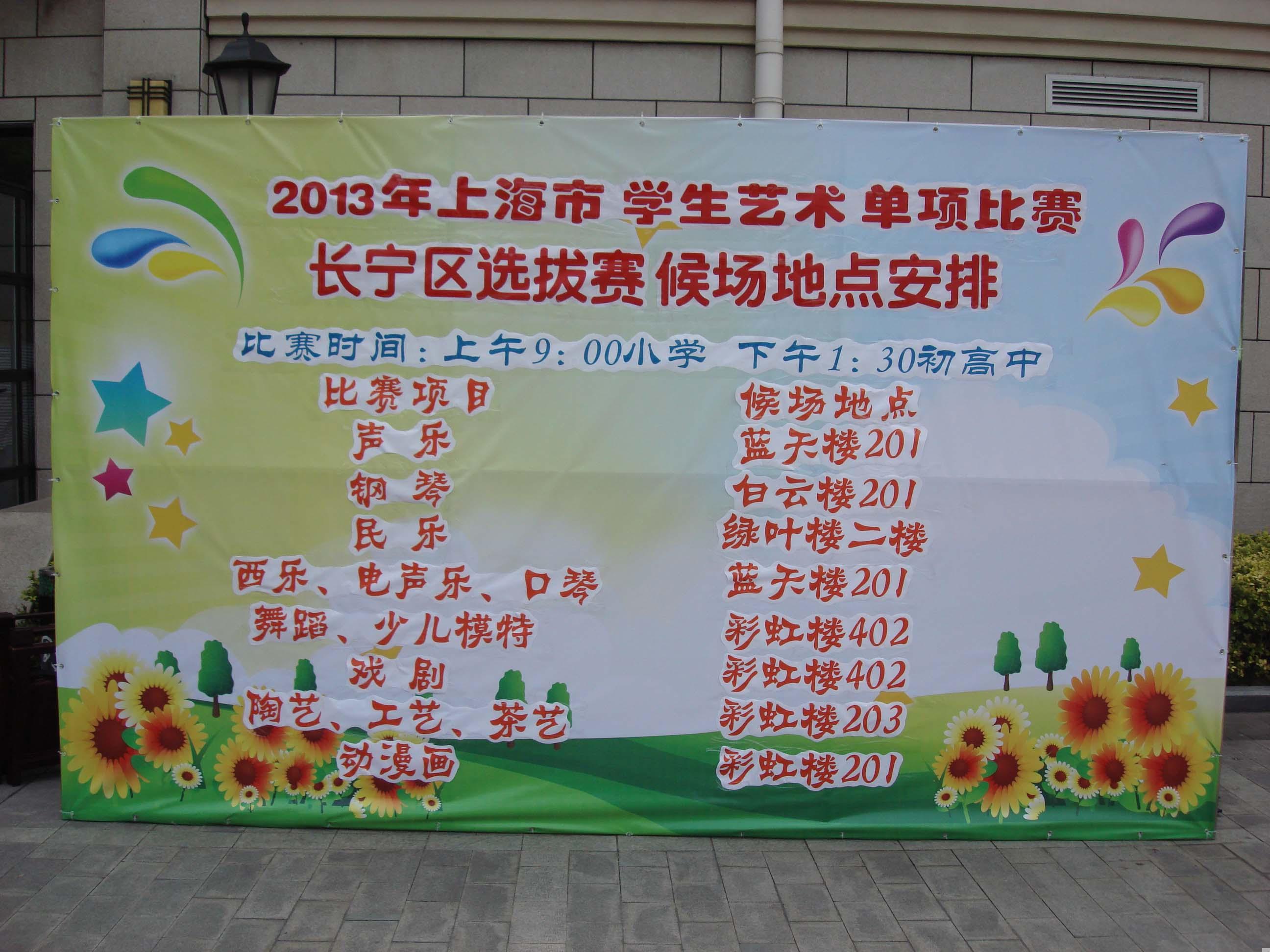 ????????2013年上海市学生艺术单项比赛长宁区选拔赛于5月25日在长宁区少年宫举行,全区具有艺术特长的学生在这里一展才华,比赛分为两场,上午是小学生场,下午是中学生场,共有493位学生报名参加了13个项目的角逐,其中的优胜者将代表长宁区参加7月份的上海市学生艺术单项比赛。