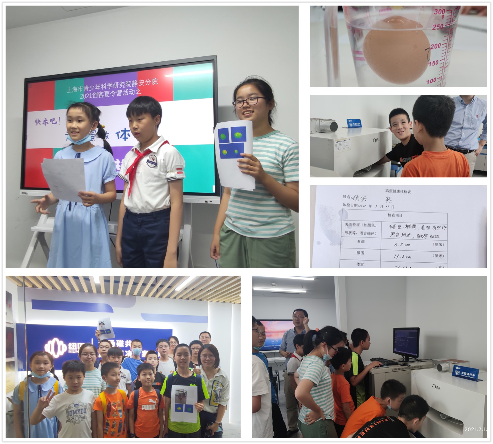 “通过我们拍的这张磁共振照片,我们认为这是一颗熟鸡蛋,因为它的蛋黄在下边,而生鸡蛋蛋黄比较轻,应该是浮在上面!”一组同学展示着他们操作磁共振成像检测设备拍出的照片,有条不紊地分析着。这是上海市青少年科学研究院静安分院磁共振科普体验活动中的一幕。7月13日,静安区少科院小研究员来到青少年磁共振科普实践基地——泰纽科教公司,专门给鸡蛋做了一项科学“体检”。