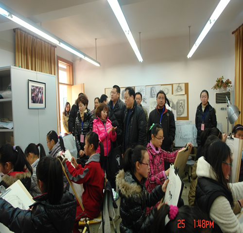 中国美术学院全国社会美术书法等级考试奉贤考点2011年下半年考级工作于12月24日、25日在奉贤区青少年活动中心顺利举行。本次考级得到了上海市文化市场行政执法总队、中国福利会考级办领导的关心重视,执法总队靳顺金处长、中福会考级办俞旭华主任一行7人于25日下午专程来奉检查、指导工作。在奉贤区青少年活动中心李继红主任陪同下视察了考场,并对工作人员及考生表示亲切问候。双方就考级工作进行了交流和研讨,气氛热烈。市领导充分肯定了奉贤考点八年来所取得的成绩,并对卓有成效的组织工作加以高度赞赏。