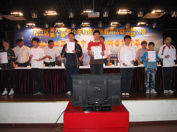 ?????? 会上,先由杨桂龙副局长对松江区第九届青少年科技创新教育竞赛活动做了总结与回顾,并由区科委科学普及培训部部长卢斌宣读了第九届创新教育活动的表彰决定,对一批优秀学校和先进个人颁发了证书和奖品。然后进行了交流议程,车墩学校副校长郑卫东、第二实验小学科技教师翁卫庆和九峰实验学校学生杨玉成分别作了交流发言,还一起观看了第九届青少年科技创新大赛优秀作品的视频展示。