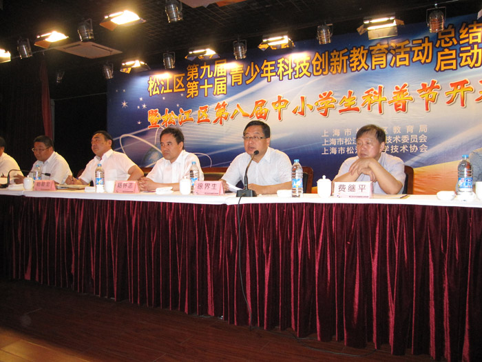 ?????? 5月30日上午,由松江区教育局、区科学技术委员会、区科学技术协会联合主办的松江区第八届中小学生科普节和第十届青少年科技创新教育竞赛活动在松江区青少年素质教育实践基地大礼堂正式启动。区科委主任、科协主席杨怀志、区教育局局长徐界生、副局长杨桂龙等有关领导出席了启动仪式,全区各中小学分管科技领导、科技总辅导员、创新教育指导教师及部分学生代表共150多人参加了本次会议。