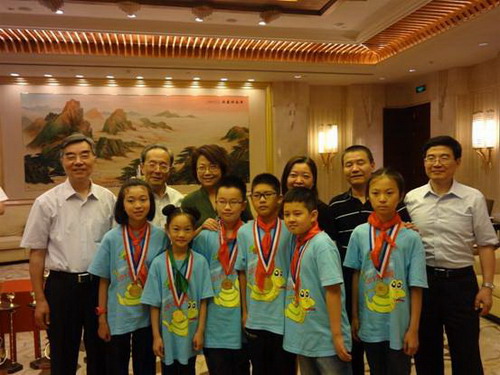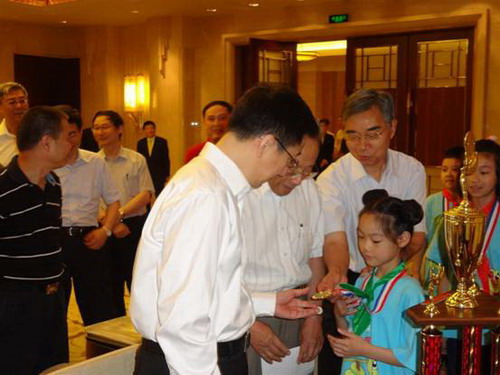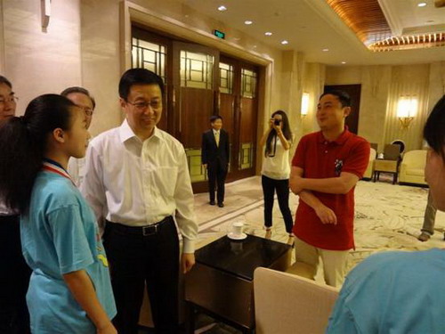 7月3日上午,市委书记韩正等领导,在衡山宾馆小礼堂接见了黄浦区青少年科技活动中心、曹光彪小学、向明初级中学、上海理工大学的OM队员和教练。
