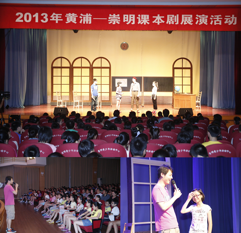 7月2日,黄浦区课本剧展演在崇明青少年活动中心完成了首轮演出的最后两场,2013年黄浦区课本剧展演首轮演出落幕。黄浦区崇明县教育局副局长黄慧、黄浦区青少年艺术活动中心主任侯橹、崇明县教育局体卫艺科科长张裕标及崇明县青少年活动中心领导出席了本次活动。