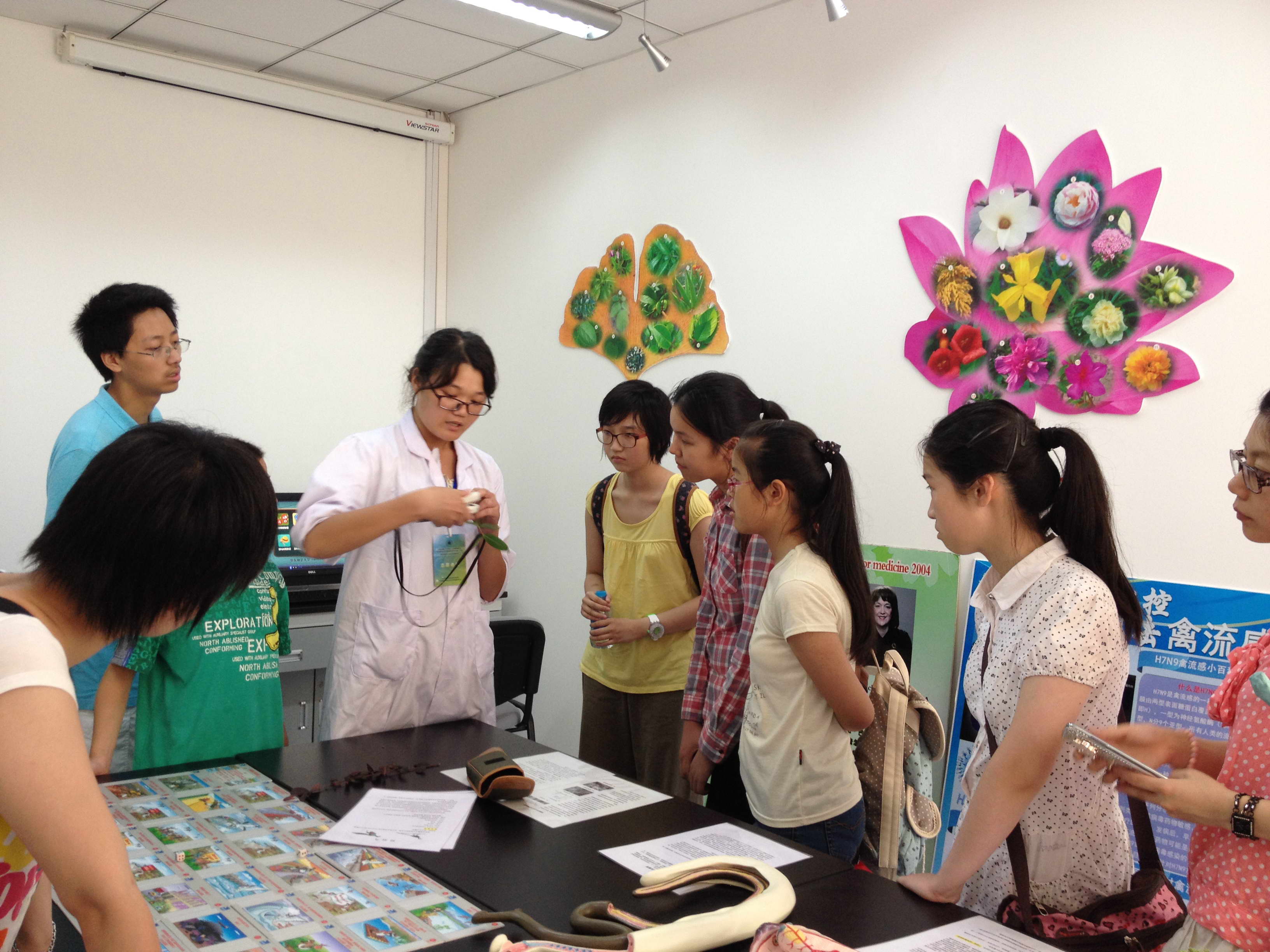 华师大的动植物博物馆历史悠久,馆藏丰富,包括鸟类、昆虫类、哺乳类等动物标本,以及种子、蕨类、苔藓、藻类等多种植物标本,通过博物馆志愿者的解说,同学们了解了许多形态逼真的动植物标本,还有幸看到了我国制作于1920年的珍贵的熊猫标本,此外,生物博物馆里还有丰富多样的生物多媒体录像,让学生自己动手,更加直观、深入地了解动植物标本“背后的故事”。在参观完动植物博物馆之后,同学们又来了化学工作站,在化学系韩老师的帮助下,同学亲自动手参与了各项有趣的化学小实验,体验了化学实验带来的乐趣,有些同学还收获了“战利品”,同学们都玩得不亦乐乎!