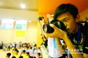 举起手中的相机,拍摄夏日里阳光体育运动的瞬间,拿起手中的纸笔,记录下画面背后的信息,这是一群快乐的“阳光体育小记者”。6月30日,由上海市学生活动管理中心和上海中学生报社共同举办的首届“阳光体育小记者”夏令营活动,在徐汇青少年活动中心拉开帷幕,上海市学生活动管理中心主任卢晓明、上海中学生报社总编杜晓峰、学生活动管理中心体育活动部部长蒋胜出席了开营式。