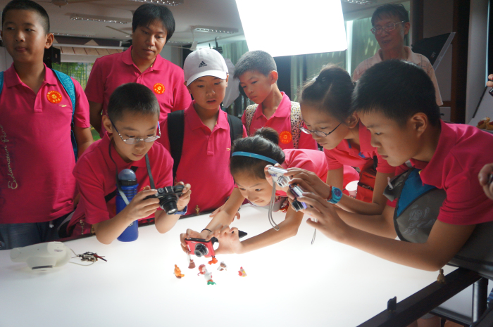 绍兴市的师生们还参观体验了数码创意实验室和数码摄影棚得活动。他们纷纷尝试,根据自己的创意构想用数位笔补全小鸟的身体,又体验了一番“小小摄影师”的角色,尝试如何进行近景拍摄调整曝光度等。