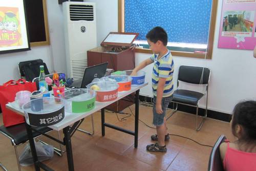 “游戏大闯关”环节更是将讲座的气氛推向了高潮,大孩子与小孩子组成临时团队,“预备……开始……”计时开始,同学们你配合来我投放,看看哪个团队的垃圾分类投放既准确又快速,“加油!加油!”下面的同学也为参赛选手助威鼓劲。
