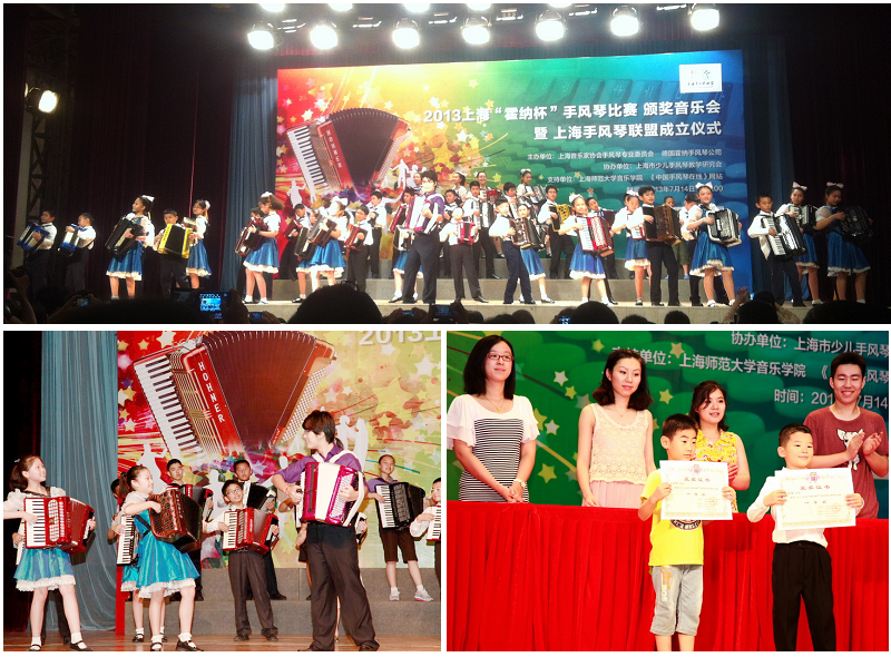 由上海音乐家协会手风琴专业委员会、德国霍纳手风琴公司主办,上海市少儿手风琴教学研究会协办的2013上海“霍纳杯”手风琴比赛,于7月14日在上海师范大学东部礼堂落下帷幕。此次比赛共有400余名选手报名参加,按年龄分幼儿、儿童、少年等多个独奏组别,经过7月6、7日在上海师范大学小音乐厅初赛激烈角逐,产生进入决赛的选手进行最后的较量,静安区青少年活动中心手风琴培训班的小学员,获得了上海霍纳杯手风琴比赛2个一等奖、3个三等奖、2个优胜奖的好成绩。