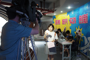 展示汇报之后,媒体记者还进行了现场的互动交流,访谈创意梦工厂教师和部分学员,通过他们的亲身经历,实例交流梦工厂和暑假活动的学习体会和收获。?
