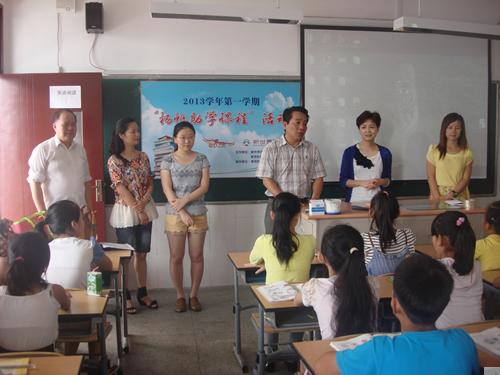 奉贤区2013学年第一学期新世界百货“杨帆助学课程”周五、周日班已于9月13日、9月15日正式开班了。奉贤区教育局基教二科张培良科长、青少年活动中心李继红主任、黄伟书记、设点学校的校长等领导出席了开班仪式。张科长与李主任在仪式上鼓励学员好好学习,珍惜新世界百货的爱心,真正有所学有所得。